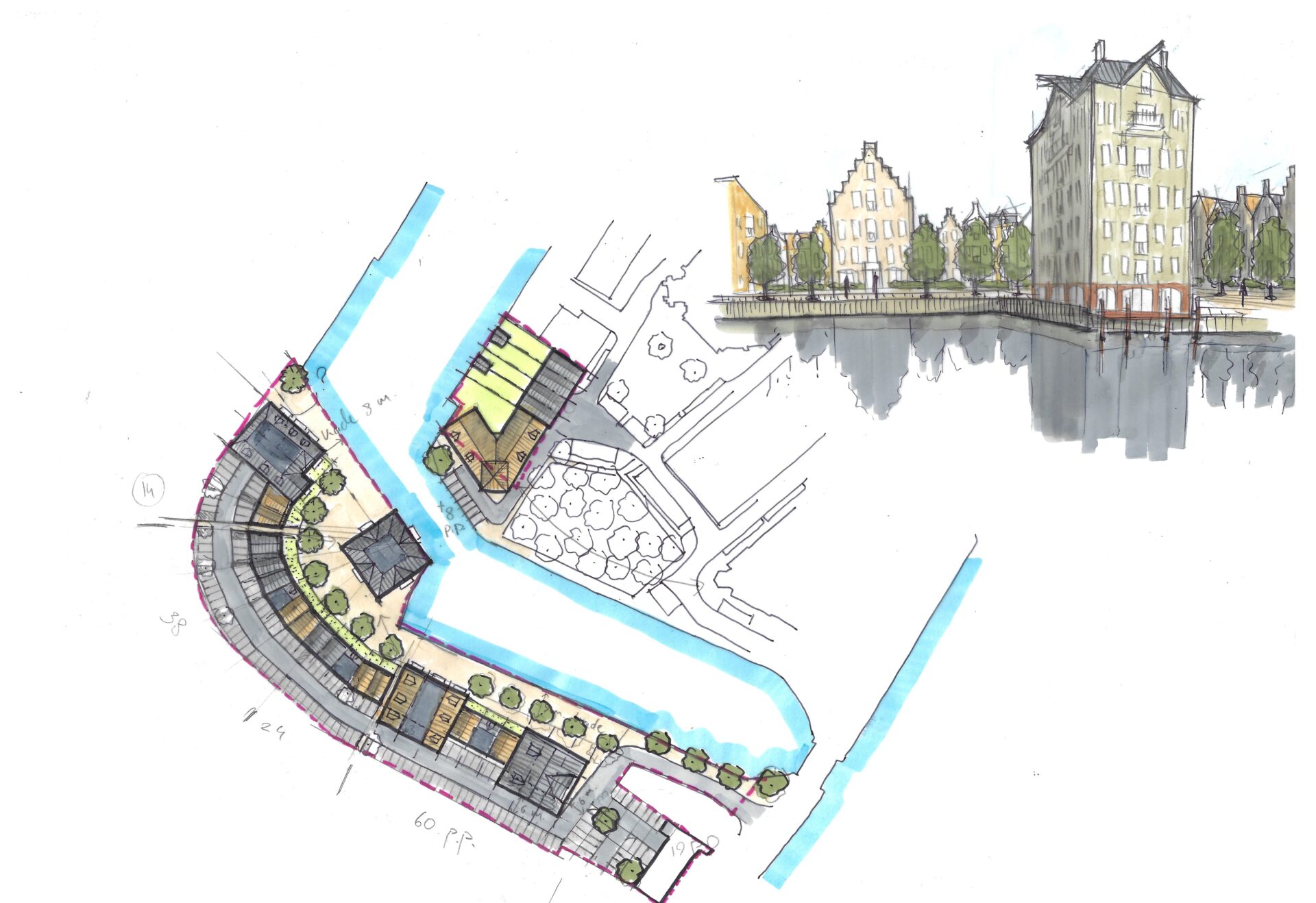 Het plan bestaat uit een wisselwerking van herenhuizen en appartementengebouwen, met een bijzonder appartementengebouw als icoon in de binnenstad.