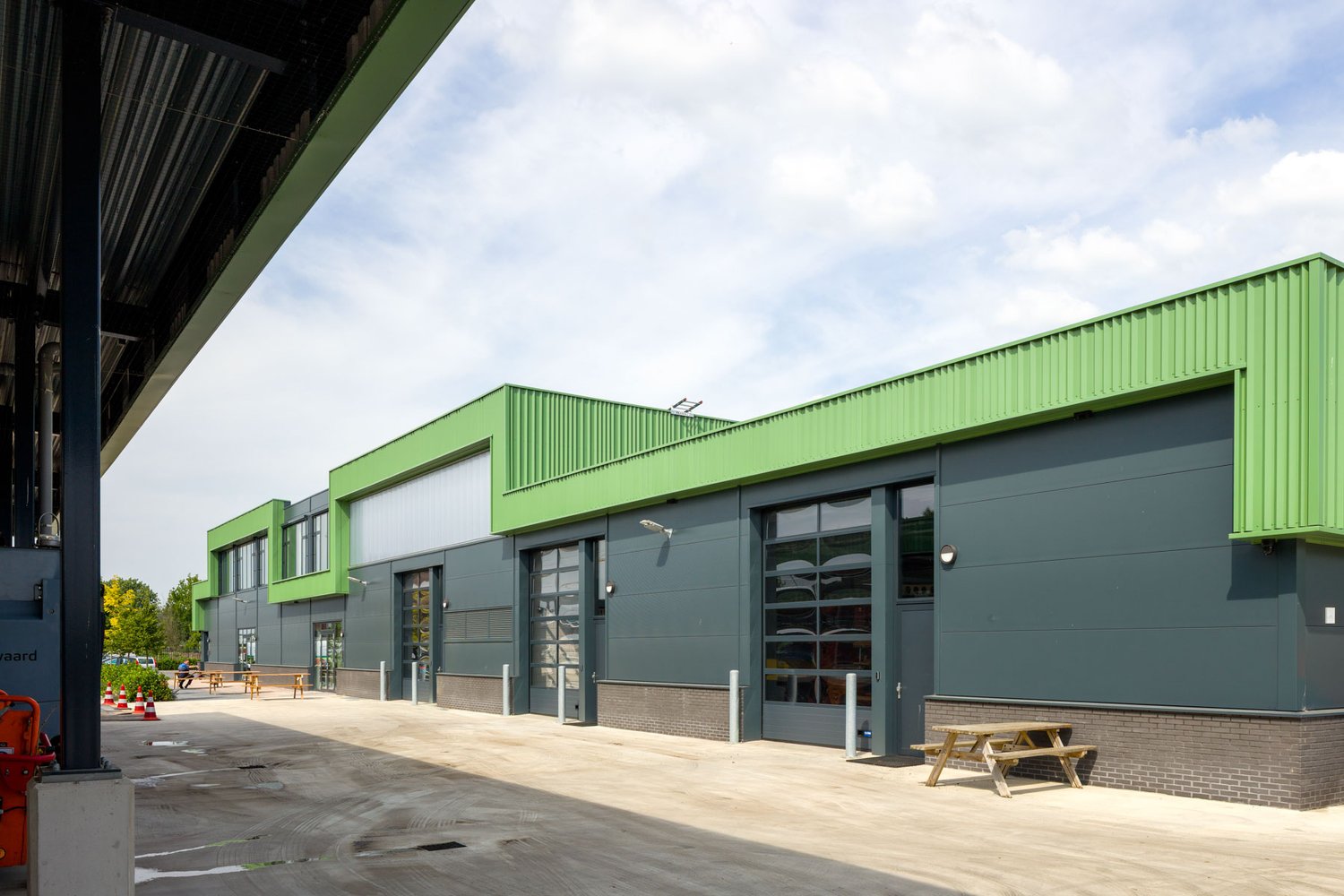 In opdracht van gemeente Krimpenerwaard ontwierp Topos de nieuwbouw van de gemeentewerf in Bergambacht. Het gebouw heeft een eigentijdse, duurzame uitstraling, met lichtgroene gevelbekleding, donker metselwerk, houten spanten en kolommen, en gevelbegroeiing. Om het geheel energieneutraal te maken zijn de gebouwen bedekt met zonnepanelen. Om voertuigen schoon te maken is er een wateropslag met regenwater. Ook krijgt circulariteit de nodige aandacht met demontabel bouwen en hergebruik van materialen. Het ontwerp bestaat uit een clustering gebouwen op een langwerpig, rechthoekig perceel, met in het midden een straat die de verschillende gebouwen ontsluit.