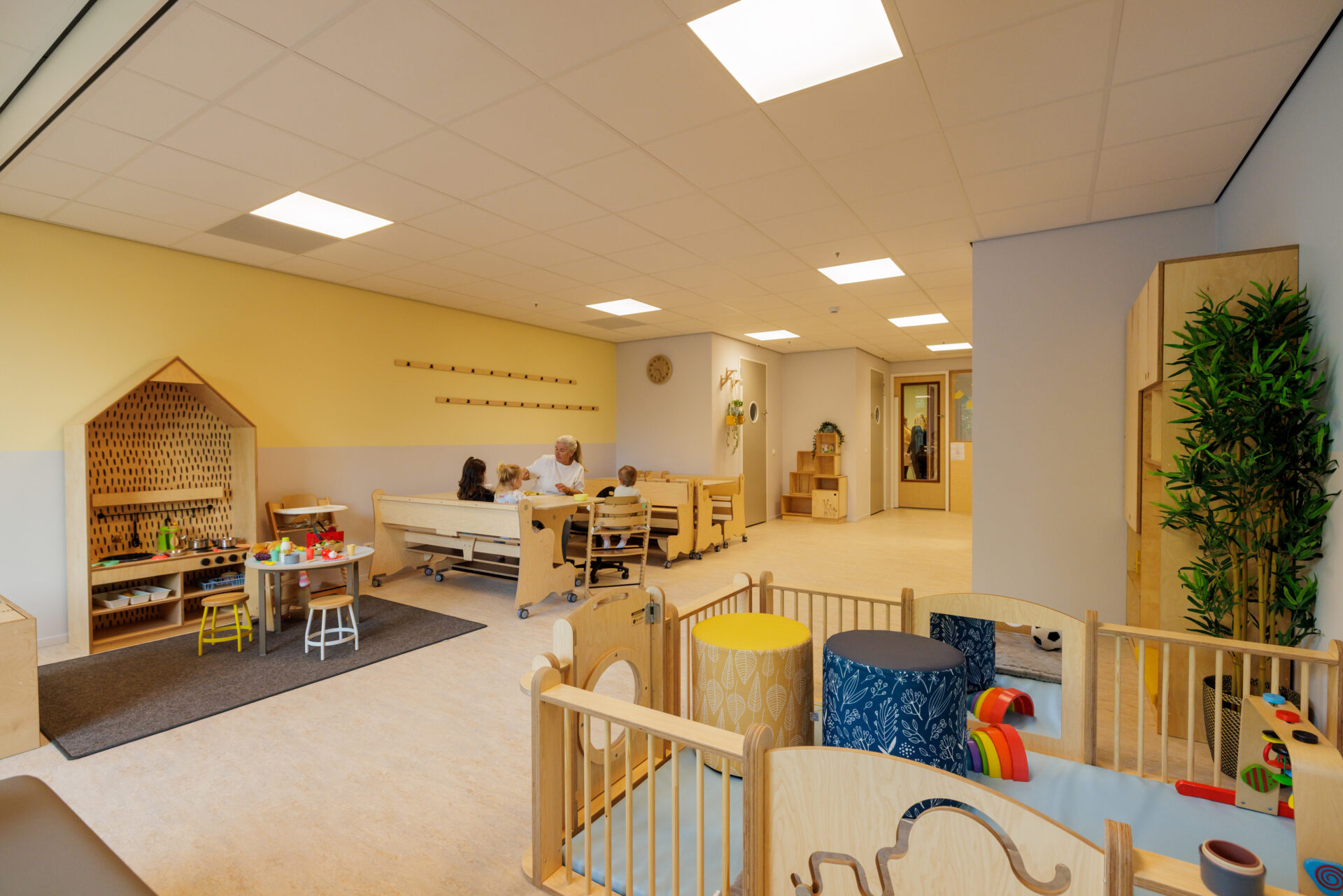 Na goedkeuring van het ontwerp begeleidde Topos de aanbesteding in bouwteam met Kernbouw en voerde de directie tijdens het bouwproces. Het buitenterrein werd ontworpen en uitgevoerd door Idverde. Het resultaat is een warme, lichte en eigentijdse kinderopvangomgeving die perfect aansluit bij de duurzame en zorgzame visie.